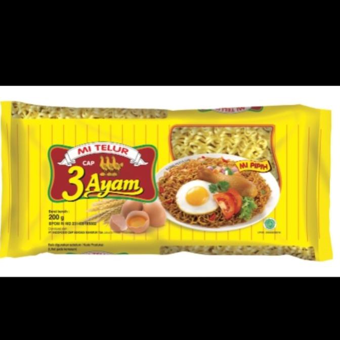 CAP 3 AYAM Mie Telor Kuning 200g Makanan menjadi kebutuhan pokok sehari-hari. Untuk Partai Besar silakan hubungi 02129407278. Mie Telur 3 Ayam Kuning 200 grpack Share on Facebook.